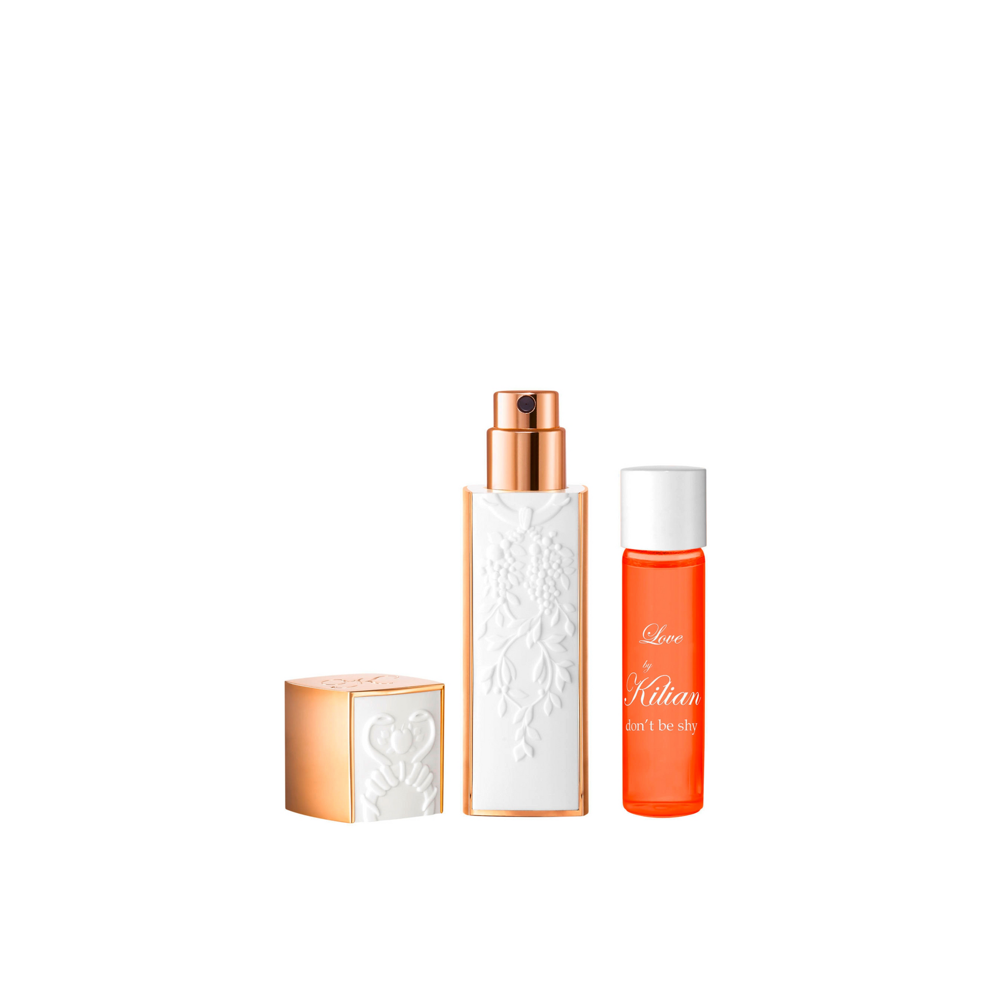 Great care is taken with every refillable KILIAN PARIS perfume bottle, making them true precious objects. The perfume bottles from the narcotic flowers family are finished with a white lacquer and meticulously engraved on each side with an interwoven motif of door, serpent, vine and apple - the symbols of original sin - an allusion to destiny.