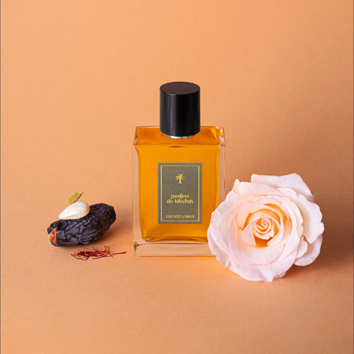 'Jardins de Misfah' is an olfactory parenthesis, a suspended moment, a harmony of perfumes where the fresh whisper of flower petals blends with an accord of creamy dates, honey and sugar water.